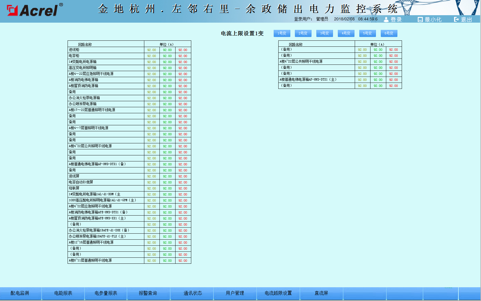 對配電系統(tǒng)每個回路設(shè)計了電流越限設(shè)置。便于配電維護人員及時根據(jù)現(xiàn)場用電需求變更用電電流設(shè)置限值,當發(fā)生電流越限,及時控制回路用電,確保供電可靠性,為用戶單位的用能權(quán)益提供保障。