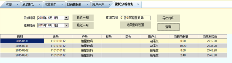 | 能耗分析報(bào)表 | 通過(guò)選擇日期段、查詢的地理位置(按樓、層或戶號(hào))進(jìn)行用電能耗的按天查詢 |