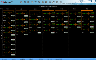 常熟江南大廈電能管理系統(tǒng)監(jiān)控區(qū)域為樓層配電箱,本項目針對樓層配電系統(tǒng)進行用電監(jiān)控與電能管理。
