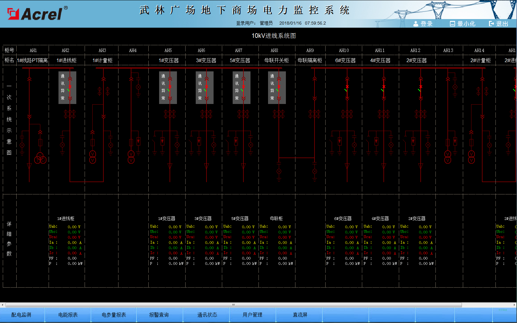 系統(tǒng)依據(jù)客戶實(shí)際需求進(jìn)行設(shè)計(jì),并實(shí)現(xiàn)了一次主接線圖界面顯示;電參量遙測(cè)及電參量越限報(bào)警;事件記錄;系統(tǒng)運(yùn)行異常監(jiān)測(cè);故障報(bào)警及操作記錄;報(bào)表查詢與打印;系統(tǒng)負(fù)荷實(shí)時(shí)、歷史曲線,用戶權(quán)限管理等主要功能。