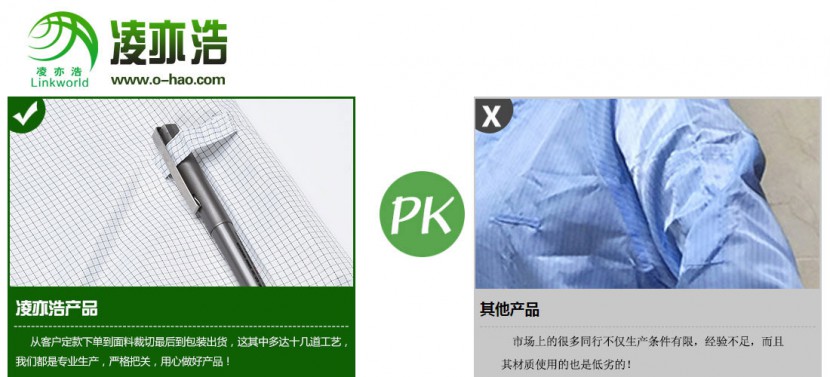 低價(jià)假冒偽劣的防靜電工作服由于節(jié)約成本,采用面料里的導(dǎo)電絲質(zhì)量不達(dá)標(biāo)或者比例不對(duì),這樣就很難起到防靜電的作用;假冒偽劣的防靜電服裝為了混過測試一關(guān)采用漂染的方法,用防靜電將衣服漂染成防靜電服”,但是經(jīng)過清洗后,這種防靜電服就會(huì)失去防靜電效果;假冒偽劣的防靜電服裝采用的導(dǎo)電綢根本不是優(yōu)質(zhì)滌綸長絲,甚至有些都是二次回收的,衣服在穿著過程中會(huì)掉細(xì)小毛屑,更加污染產(chǎn)品;假冒偽劣的防靜電服采用非專業(yè)包縫工藝,導(dǎo)致衣服的各個(gè)點(diǎn)不導(dǎo)通,做工很差,容易開線脫絲,會(huì)對(duì)產(chǎn)品造成致命性的損壞,嚴(yán)重影響到企業(yè)的名譽(yù)及利益!