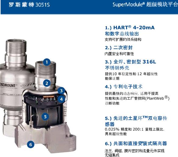 據(jù)羅斯蒙特公司介紹,3051S變送器在電容式測量原理的基礎(chǔ)上,采用超級模塊(SuperModule)設(shè)計及先進的土星(Satum)雙傳感器檢測技術(shù)(見圖4),擴大了自診斷能力,使變送器零漂降低30%,過壓性能提高10倍;改進了傳感膜頭制造工藝,提高了膜頭精度和靜壓性能;改進充油工藝過程,優(yōu)化了產(chǎn)品性能;采用新的專用集成電路ASIC技術(shù),使變送器線性更好,精確度更高;超級模塊與單一電路板置于全焊接真空密封的不銹鋼殼體內(nèi),因而消除了濕氣、粉塵及其它現(xiàn)場惡劣環(huán)境對變送器測量的影響。