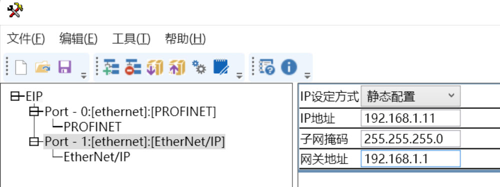 5、雙擊EtherNet/IP轉(zhuǎn)PROFINET網(wǎng)關(guān)模塊設(shè)置參數(shù);