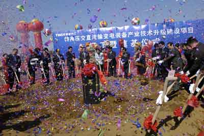 特變電工沈變在沈陽經(jīng)濟(jì)技術(shù)開發(fā)區(qū)開發(fā)大路十六號街舉行了盛大的“特高壓交直流輸變電裝備產(chǎn)業(yè)技術(shù)升級建設(shè)項(xiàng)目”開工奠基儀式,至此,該項(xiàng)占地1000畝,首期投資16.6億元的世界電壓等級最高、生產(chǎn)能力最大的“輸變電產(chǎn)業(yè)園”建設(shè)項(xiàng)目啟動。 “輸變電產(chǎn)業(yè)園”建設(shè)項(xiàng)目啟動 “特高壓交直流輸變電裝備產(chǎn)業(yè)技術(shù)升級建設(shè)項(xiàng)目”將以超高壓和特高壓交流、直流變壓器類產(chǎn)品研制為核心,與其配套的“輸變電產(chǎn)業(yè)園”將以新型高壓互感器、套管、國際成套工程等高新技術(shù)產(chǎn)品研制為制造基地,建設(shè)具有強(qiáng)大核心競爭力的世界級輸變電產(chǎn)業(yè)集群。項(xiàng)目一期變壓器類產(chǎn)品核心廠房設(shè)計(jì)面積19萬平方米,年生產(chǎn)能力8000萬千伏安,是目前世界上一次性投資最多、生產(chǎn)能力最大、電壓等級最高的工廠。 該項(xiàng)目是響應(yīng)遼寧省沈陽市“振興東北老工業(yè)基地,重整東北輸變電產(chǎn)業(yè),打造百億企業(yè)集團(tuán)”號召,滿足中國乃至世界日益增長的電力市場需求開工建設(shè)的。項(xiàng)目座落于剛剛被國家授予“振興東北老工業(yè)基地暨裝備制造業(yè)發(fā)展示范區(qū)”的沈陽經(jīng)濟(jì)技術(shù)開發(fā)區(qū),具有獨(dú)特的戰(zhàn)略、人才、交通、產(chǎn)業(yè)基礎(chǔ)等優(yōu)勢。通過借鑒當(dāng)今最前沿的廠房設(shè)計(jì)思路、引進(jìn)最先進(jìn)的工裝設(shè)備,項(xiàng)目布局及工藝流程將更加科學(xué),裝備水平將全面升級,企業(yè)產(chǎn)能和研發(fā)能力將得到最大限度提升。 項(xiàng)目計(jì)劃兩年時(shí)間完成,屆時(shí),依托這一嶄新發(fā)展平臺,沈變公司將在三年大發(fā)展基礎(chǔ)上實(shí)現(xiàn)產(chǎn)業(yè)技術(shù)升級,躋身世界最重要的輸變電裝備研發(fā)、制造基地行列,并通過高舉自主創(chuàng)新旗幟,不斷推出世界級輸變電裝備產(chǎn)品,不斷為中國制造到中國創(chuàng)造的跨越,為東北老工業(yè)基地和中國重大裝備制造業(yè)的振興發(fā)展做出新的、更大的貢獻(xiàn),為迎接“十七大”的勝利召開獻(xiàn)上一份厚禮!