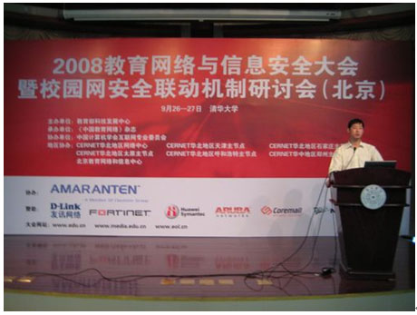 9月26日,教育部科技發(fā)展中心與盈世公司和多家IT知名廠家在北京龍泉湖酒店共同舉辦 “2008教育網(wǎng)絡(luò)與信息安全大會暨校園網(wǎng)安全聯(lián)動機(jī)制研討會”活動,皆在幫助解決教育主管部門和學(xué)校管理者普遍關(guān)心的教育網(wǎng)絡(luò)和信息的安全問題。