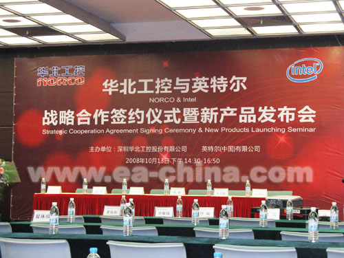 2008年10月13日深圳高交會,華北工控再一次用技術創(chuàng)新,吹響了“中國創(chuàng)造”的號角。13日下午,華北工控完成了與英特爾戰(zhàn)略合作的簽約儀式,華北工控與英特爾的強強聯(lián)合,開啟了中國工控領域中嵌入式技術發(fā)展的新紀元。中國電氣自動化網(wǎng)做為本次發(fā)布會的支持媒體,也應邀來到了現(xiàn)場。