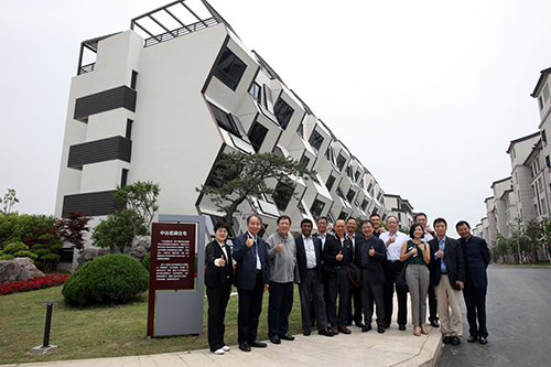 評審專家們參觀吳江同里湖畔2011競賽一等獎作品、由臺達集團投資建設(shè)而成的“中達低碳住宅”