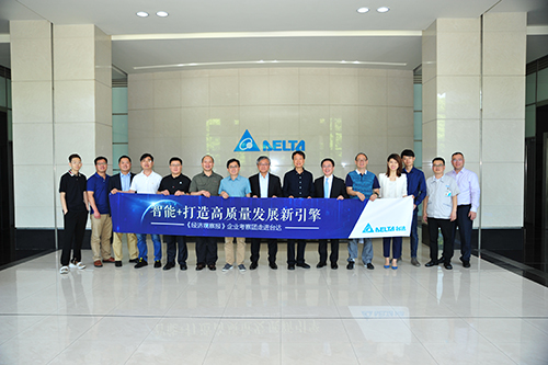 圖1:原工信部節(jié)能與綜合利用司司長周長益 (右七)、機(jī)械科學(xué)研究總院裝備制造業(yè)發(fā)展中心所長吳進(jìn)軍 (左五)、 賽迪顧問智能裝備產(chǎn)業(yè)研究中心總經(jīng)理張凌燕(右四)等專家,參訪臺達(dá)吳江智能制造示范線,肯定臺達(dá)智造升級。