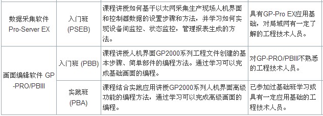 GP/ST/GLC的各項(xiàng)強(qiáng)大功能,Pro-face特舉辦免費(fèi)滾動(dòng)式培訓(xùn)課程。為滿足不同的客戶需求,我們特地設(shè)計(jì)了從初級(jí)到高級(jí)的軟件課程,您可以根據(jù)自身的應(yīng)用要求選擇合適的課程。培訓(xùn)課程以基礎(chǔ)功能講解和實(shí)際案例應(yīng)用相結(jié)合,并現(xiàn)場(chǎng)解答各類問題。