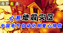 中國(guó)電氣自動(dòng)化網(wǎng)面對(duì)此次地震給四川人民帶來(lái)的災(zāi)難,義不容辭地獻(xiàn)出一份愛心,雖然不能趕赴現(xiàn)場(chǎng),本網(wǎng)通過網(wǎng)絡(luò)為災(zāi)區(qū)捐款。