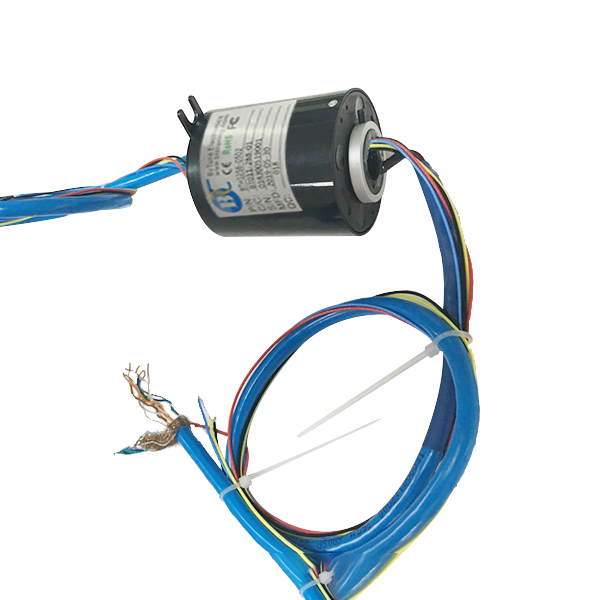 以太網(wǎng)信號(hào)滑環(huán)過孔導(dǎo)電環(huán) 此款BTH1256過孔導(dǎo)電滑環(huán)也是以太網(wǎng)信號(hào)滑環(huán),如產(chǎn)品圖中展示可見,藍(lán)色皮套套住的較粗的就是傳輸以太網(wǎng)信號(hào)的線,所以此款滑環(huán)既能傳輸電流信號(hào)的同時(shí)也能傳輸以太網(wǎng)信號(hào),并且實(shí)現(xiàn)旋轉(zhuǎn)效果,此外RJ45的接口或其它可選。此以太網(wǎng)信號(hào)滑環(huán)內(nèi)徑 12mm,外徑56mm,電流路數(shù)為4路, 每路2A,以太網(wǎng)信號(hào)傳輸千兆以上,特殊絕緣設(shè)計(jì)避免電流及其它電磁干擾,回波損耗小,插入損耗小,無丟包、串碼等現(xiàn)象,電流信號(hào)與以太網(wǎng)信號(hào)傳輸穩(wěn)定,工業(yè)以太網(wǎng)信號(hào)也可支持。深圳比爾德滑環(huán)定制一直是我們的優(yōu)勢(shì),我們不僅支持以太網(wǎng)信號(hào)滑環(huán)定制,也可接受其它信號(hào)傳輸,或者是氣液壓與電流功率傳輸定制。歡迎各種聯(lián)系方式的來電定制垂詢!樣品可供!交貨快!物流配送安全快!