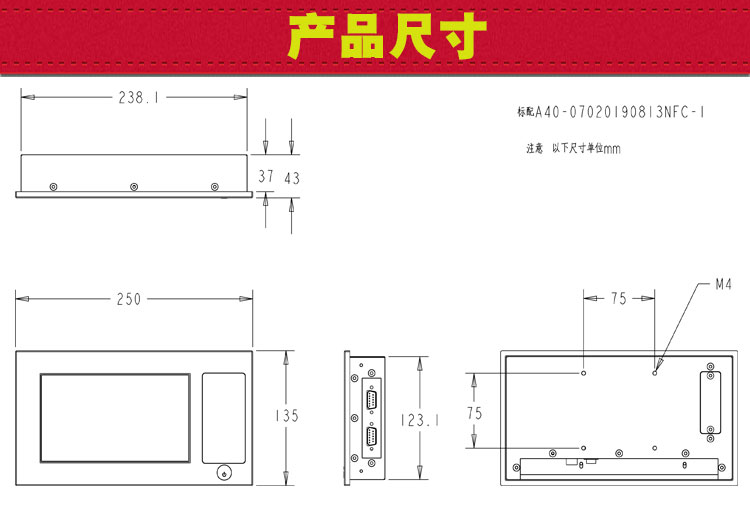 處理器 CPU 全志A40i,主頻1.2GHz 內存 DDR3 1G 存儲 NAND FLASH 8G(可選),支持TF卡 網絡-LAN 1×(RJ-45),10/100 Mbps 端口/外接設備 2個串口 2×RS-232,(主板最多可擴展4個COM口,其2個RS232,2個TTL) USB接口 外部2×USB(支持一個OTG),內部3×USB可擴展 I/0接口 1個 HDMI端口 音頻接口 左右聲道輸出,內置雙雙通道6R/10W功放 1個 DC端口,一個開關 ON/OFF 1個Mini-PCIE卡座 重量 凈重(kg) 0.95kg 毛重(kg) 1.25kg 尺寸 總體尺寸(長×寬×厚) 250×135×43 安裝尺寸(長×寬) 238.1×123.1 電源支持 DC(直流)12V 定時開關機 支持 LCD 顯示屏 類型 7英寸彩色 TFT-LCD 面板型號 ORX070-FTCTX-40A 最大分辨率 1024(RGB)×600(SVGA) 顯示顏色 262K(6-bit) 對比度 800:1(Typ.)(透射) 可視角度 80/80/65/65(Typ.)(CR≥10)(左/右/上/下) 亮度 500 cd/m2 (Typ.) 響應時間 10/25(Typ.)(Tr/Td)(ms) 像素間距 0.264×0.264mm(橫*豎) 背光類型 LED燈 觸摸屏 類型 多點電容觸摸屏 分辨率 連續(xù) 光傳導 80% 控制器 I2C 接口 耐久性(觸摸次數) 3500萬次 環(huán)境參數 工作溫度 -30℃~80℃ 相對濕度 10~95%@ 40℃,非凝結 沖擊 10 G 峰值加速度 (11毫秒,間隔) 振動 10 G 企業(yè)資質認證 CE,F(xiàn)CC,ROHS