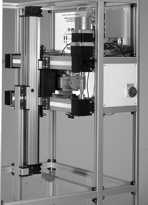 機器人定位系統(tǒng)是整臺設(shè)備的核心,為德國bahr公司產(chǎn)品, X,Y,Z三坐標(biāo)均選擇為高精密滾珠絲杠傳動,單坐標(biāo)重復(fù)定位精度為0.025mm。