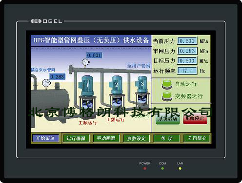 變頻恒壓供水系統(tǒng)觸摸屏控制器 北京博格朗科技有限公司