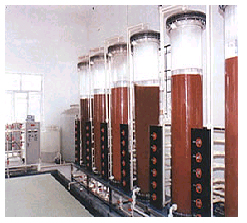 中水回用,一方面為城鎮(zhèn)供水開辟了第二水源,可大幅度降低“上水”(自來水)的消耗量;另一方面在一定程度上解決了“下水”(污水)對水源的污染問題,起到既經(jīng)濟(jì)又環(huán)保的作用。  目前中水主要用于以下兩方面:  1、生活雜用水,用于沖廁所、洗地、綠化、景觀等;  2、生產(chǎn)用水; 恒田公司在中水回用設(shè)備/工程方面,根據(jù)客戶對回用水的要求標(biāo)準(zhǔn)而采用不同的處理技術(shù),主要包括:物質(zhì)分離與生化處理、 RO反滲透、MBR生物反應(yīng)膜、離子交換、活性炭吸附等技術(shù); 離子交換法回收 離子交換法回收的目的是將溶解于水中的無機(jī)離子排除,原理說明如下:陽離子交換樹脂用氫離子(H+)來交換陽離子;而陰離子交換樹脂則利用氫氧根離子(OH-)來交換陰離子,可以靠電阻(esistivity)或?qū)щ姸?conducivity)來判斷去離子功能是否有效。離子交換樹脂與各陰陽離子的新和力強(qiáng)度如下:Ba2+>Pb2+>Sr2+>Ca2+>Ni2+>Cu2+>Co2+>Zn2+>Mg2+>Ag+>Cs+>K+>NH4+>Na+>H+>SO42->I->NO3->NO2->Cl->HCO3->OH->F-