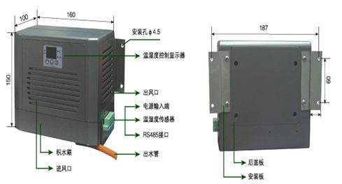 5. 當環(huán)境濕度達到或高于設(shè)定值時,抽濕機自動啟動,當環(huán)境濕度降低到比設(shè)定值低10%時,抽濕機自動停止抽濕。抽濕機下部的出水口會將抽濕后的凝結(jié)水自動排出,用戶只要插上長度適當?shù)膬?nèi)徑φ5mm的塑料水管,水就會從水管中排出,只需在現(xiàn)場放置好接水容器或做好排水槽即可。 |