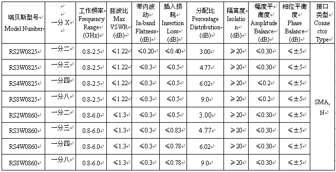 功分器型號: