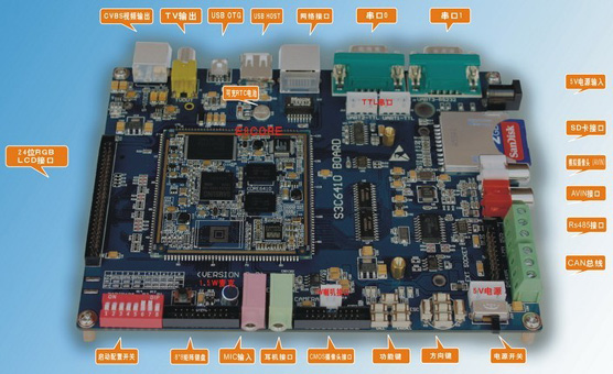 HQ6410硬件介紹 核心板E6CORE ◆.256M byte mDDR,功耗低,移動(dòng)設(shè)備的首選 ◆.1G byte NandFlash,先進(jìn)的MLC工藝制造 ◆.最高主頻可達(dá)800M的S3C6410高主頻版本 ◆.多路輸入和輸出的音頻設(shè)計(jì),與GSM模塊構(gòu)成完美Phone解決方案; ◆.WM9713 audio,AC97接口 ◆.完善的電源管理,具有使能引腳的單路電源供電,支持Sleep功能 ◆.板載10/100M DM9000AEP以態(tài)網(wǎng) ◆.QFP100引腳引出6410除總線外所有功能,穩(wěn)定可靠連接產(chǎn)品板。 ◆.預(yù)留大容量MoviNand接口,可擴(kuò)展更大容量的MoviNand flash ◆.采用8層板設(shè)計(jì),其中盲孔兩層、埋孔一層,阻抗嚴(yán)格匹配,總線按規(guī)范等長(zhǎng) ◆.170pin郵票孔封裝,尺寸僅6*6cm,厚度2.8MM 底板 ◆.MiniUSB OTG接口 ◆.USB Host1.1接口 ◆.100M Ethernet RJ45接口 ◆.兩路RS232接口 ◆.SD Card接口 ◆.兩路TTL Uart接口 ◆.一路耳機(jī)接口,一路MIC單路輸入 ◆.Camera接口 ◆.CAN接口 ◆.RS485接口 ◆.手動(dòng)復(fù)位按鍵 ◆.SPI總線接口 ◆.IIC總線接口 ◆.AV輸出端子和S端子輸出 ◆.兩路可切換AVIN視頻輸入接口,(支持PAL和NTSC接口模擬視頻) ◆.板載差分駐極體MIC(麥克風(fēng)) ◆.板載1W喇叭 ◆.GSM/GPRS模塊SIM300板載接口 ◆.SDIO WIFI接口 ◆.SIRFIII GPS模塊接口 ◆.拔碼配置開(kāi)關(guān) ◆.電源輸入接口,帶有開(kāi)關(guān) ◆.24位RGB LCD接口 ◆.8*8矩陣鍵盤(pán)接口預(yù)留 ◆.標(biāo)準(zhǔn)Google Android按鍵 ◆.標(biāo)準(zhǔn)方向五線按鍵