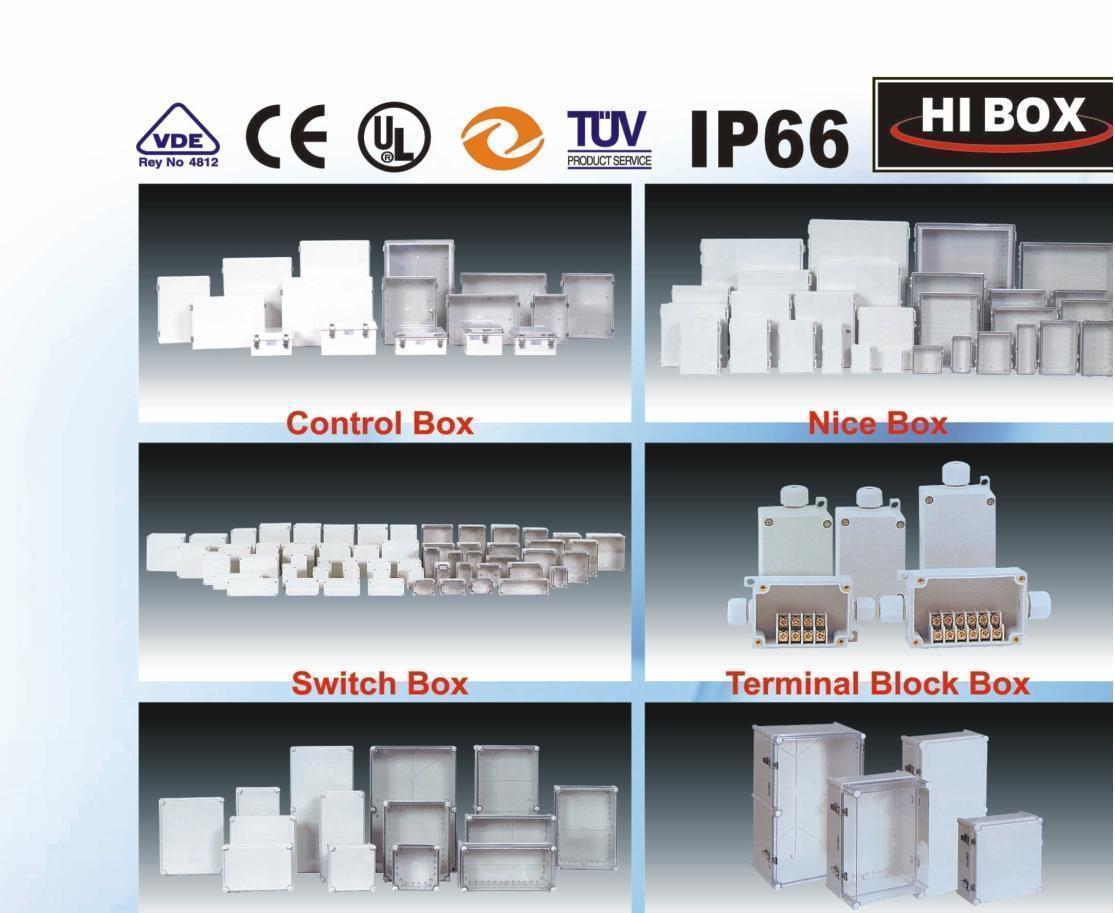 韓國(guó)DSE HIBOX防水開關(guān)箱,接線盒(采用ABS、PC、Polyester、AC、UV和耐火材料等材料制成。產(chǎn)品中包含防EMI輻射、防靜電的物質(zhì)。防水防塵,防護(hù)等級(jí)IP66,抗沖擊IK08。獲得德國(guó)VDE和TUV標(biāo)志、歐共體CE標(biāo)志和美國(guó)UL標(biāo)志。廣泛用于電子電氣,通信,消防設(shè)備,控制配電盤,端子箱,PCB BOX,船舶,石油化工,大型工廠,沿海工廠,碼頭,水處理設(shè)施,環(huán)保設(shè)備等);