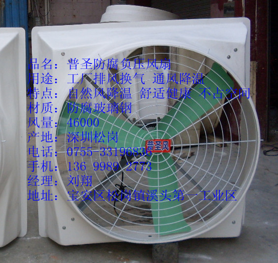 深圳普圣玻璃鋼防腐喇叭式抽風機工業(yè)廠房排風設(shè)備系列產(chǎn)品均采用CAD/CAM設(shè)計,具有噪音低、風量大、耗能小、運行平穩(wěn)、壽命長、效率高,并擁有百葉自動開啟、關(guān)閉系統(tǒng)。達到防塵、防水、美觀等效果。普圣牌工業(yè)廠房排風設(shè)備便于安裝,是工業(yè)廠房、倉庫、生產(chǎn)車間、大型飯?zhí)谩⑴潆娛摇C房等悶熱、異味、油煙、粉塵等通風不良場所及畜牧、養(yǎng)殖業(yè)用通風降溫除異味的最佳設(shè)備。產(chǎn)品特點說明:深圳普圣工業(yè)廠房排風設(shè)備為六葉壓鑄成型,強度高、不變形、耐腐蝕、耐高溫,根據(jù)流體力學(xué)原理設(shè)計的風葉角度使排氣效果達到最優(yōu)化,省電、風量大、噪音小、防空氣回流。玻璃鋼纖維外框材質(zhì),高強度、耐腐蝕、不分解的特點。 根據(jù)流體力學(xué)原理優(yōu)化風道設(shè)計,每小時排風量46000-48000立方米,1臺風機可保證800立方米車間每分鐘換氣一次,所匹配功率僅為0.75千瓦。 PVC氣動百葉窗,隨氣流自動開閉,防雨防塵,美觀、堅實耐用、安裝不占用空間,適用于任何工業(yè)廠房通風和降溫使用。