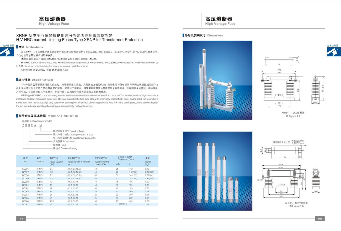XRNP型電壓互感器保護用高分段能力高壓限流熔斷器適用于交流50Hz,額定電壓3.6~40.5KV,額定電流至6.3A的電力系統(tǒng)中,作為電壓互感器過載或短路保護,符合國家GB15166.2標準和國際電工委IEC60282-1標準。聯(lián)系電話029-84258797  18966700156