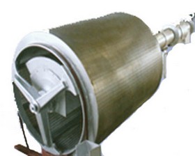 設(shè)備與水平面呈35°安裝在水渠中,污水從鼓的端頭流入鼓中,水通過柵網(wǎng)的柵縫流出, 固體垃圾被過濾在柵網(wǎng)筐內(nèi),帶有耙齒的清潔臂在圓周運動時清理格柵縫隙,耙齒伸入柵網(wǎng)中,將固體取出,當(dāng)清潔臂處于最高點時,通過水的沖洗及擋渣板的作用, 將垃圾從耙齒上清除下來,并掉入垃圾收集裝置螺旋輸送斗中,在輸送過程中通過變螺距的作用被脫水,在最上端壓縮區(qū)被擠干,而擠壓水被回流至水渠, 垃圾最后送入集裝箱或后繼設(shè)備,再進(jìn)行處理。