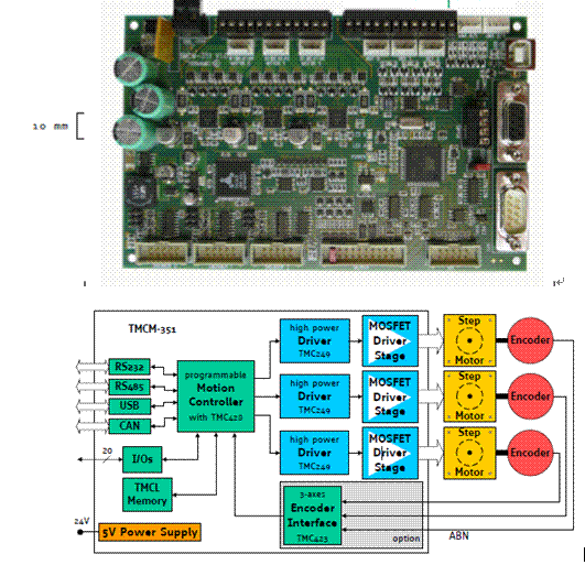 TMCM-310是一款獨特的集成了3個步進電機的控制和驅(qū)動與一體的智能步進產(chǎn)品,自帶控制和驅(qū)動功能無須外部的PLC或控制卡等控制器,由于采用德國TRINAMIC低功耗驅(qū)動芯片所以幾乎沒有熱量發(fā)生,因此體積很小。此外帶有12個輸入口(數(shù)字/模擬)和8個輸出(數(shù)字),此外客戶還可以選擇帶有編碼器反饋的3軸控制卡供選擇,可以支持聯(lián)機控制,也可以脫機控制帶有64KEEROM用于程序存儲。此外支持LabView,VB,VC語言