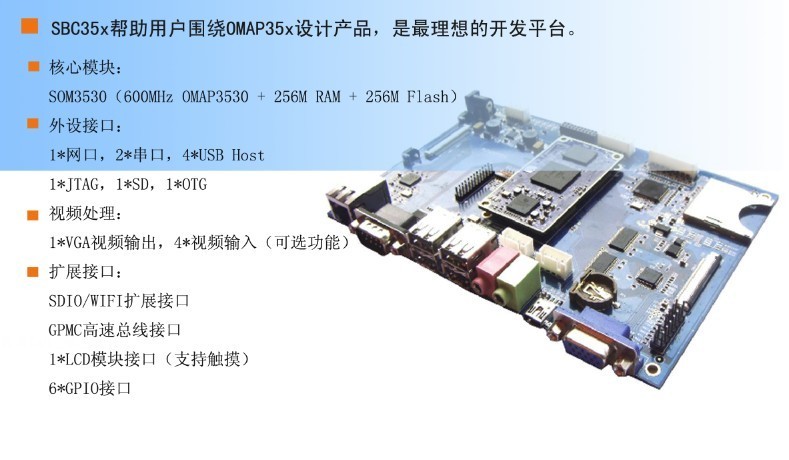 SBC35x幫助用戶圍繞OMAP35x構(gòu)建自己的產(chǎn)品,對(duì)TI發(fā)布的PSP軟件套件進(jìn)行優(yōu)化改進(jìn),并提供開(kāi)發(fā)工具等,是用戶理想的產(chǎn)品軟件開(kāi)發(fā)平臺(tái)。針對(duì)Android操作系統(tǒng)進(jìn)行優(yōu)化處理,提供完善的系統(tǒng)和常見(jiàn)的應(yīng)用軟件,是實(shí)現(xiàn)便攜式的移動(dòng)互聯(lián)網(wǎng)設(shè)備的理想平臺(tái)。