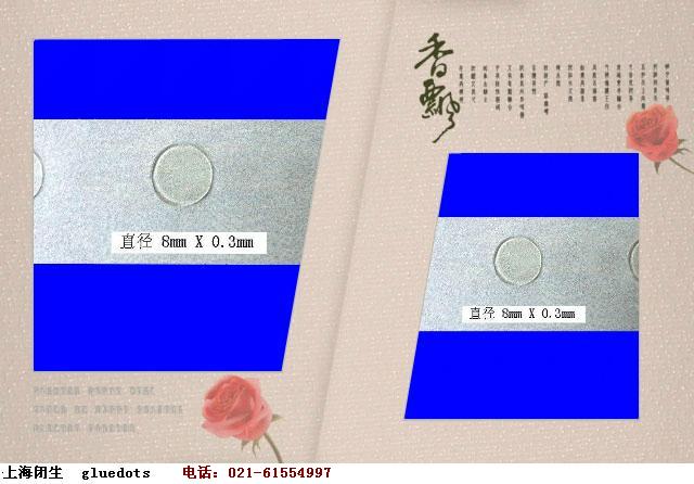 可移膠點(Glue Dot)是一種預成型的、可雙面粘貼的透明膠貼。