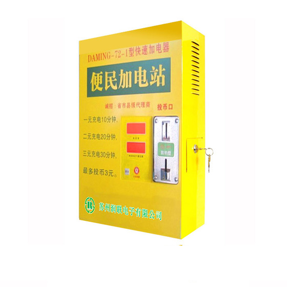 二、設(shè)備功能全智能化,操作簡單,語音提示,無需專人值守適用于 24、36V、48V、60V、72V電動(dòng)車電池,電池快充,自動(dòng)電池電壓識(shí)別.投幣1元,充電10分鐘,到時(shí)自停,可以行使5-10公里,電池可以待機(jī)10-24個(gè)小時(shí),液晶屏顯示各參數(shù),錢幣自動(dòng)識(shí)別計(jì)時(shí)收費(fèi),每次充電最多投幣3次充電30分.投幣枚數(shù):1-3元可以調(diào)整,時(shí)間10-30分鐘可以設(shè)定。充電過程中:語音每分鐘提示一次,正在充電;充電過程中,接頭線脫落:語音提示輸出線沒有接入,請(qǐng)接入電源對(duì)電動(dòng)車電池電壓:能自動(dòng)識(shí)別目前市場上24-72伏電動(dòng)車,以及電池,進(jìn)行自動(dòng)充電。 能自動(dòng)識(shí)別電動(dòng)車充電站極性,自動(dòng)識(shí)別正負(fù)極,進(jìn)行自動(dòng)充電。自動(dòng)轉(zhuǎn)入智能充電:充電過程中,自動(dòng)檢測(cè)電池電壓,根據(jù)電壓情況自動(dòng)調(diào)節(jié)充電電流,從而實(shí)現(xiàn)智能充電。具有防錯(cuò)接、防反接、防漏電、防雷擊等多重保護(hù)功能在充電的同時(shí),對(duì)電池有修復(fù)和維護(hù)的作用 .可安裝在墻壁及各種桿柱上,設(shè)備后面或側(cè)面有固定設(shè)備的附件 .輸出端接電池的插頭有多種,適用常見的任何電動(dòng)車電池的接入充電。 外觀新穎別致、色彩醒目富視角沖擊力,烤漆光滑平整。