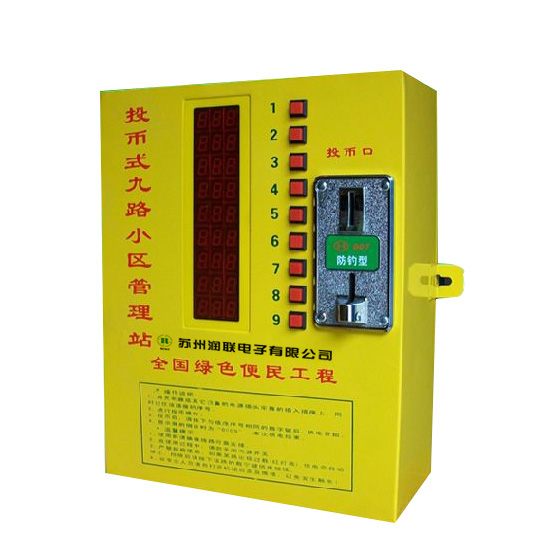 產(chǎn)品由一臺(tái)控制器外加十個(gè)兩孔84插座構(gòu)成,控制器內(nèi)裝有電表及空氣開關(guān),主機(jī)具有錢幣識(shí)別功能,識(shí)別率可達(dá)到99.7%。出廠設(shè)置只識(shí)別錢幣(也能根據(jù)客戶需要定制可使用代用幣的機(jī)型)。并且控制器有九、十路供電通道,每路通道都有其獨(dú)立的顯示窗口與控制按鍵,用戶在投幣(或刷卡)后,按下其中的一個(gè)控制按鍵,控制器就會(huì)給對(duì)應(yīng)通道的插座供電,各通道的工作狀態(tài)與工作時(shí)間,可以通過其對(duì)應(yīng)的顯示窗口顯示出來。考慮為適應(yīng)不同型號(hào)的電動(dòng)車,控制器輸出的是220V電源,給電動(dòng)車充電時(shí)還是需要插接上電動(dòng)車自帶的充電器。