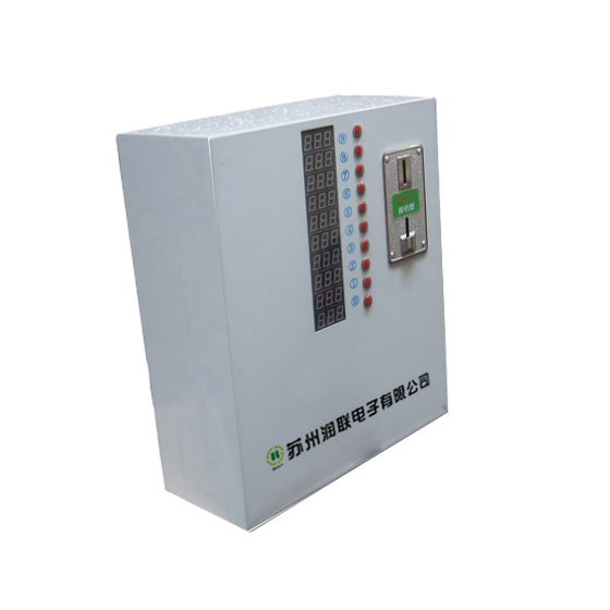 產(chǎn)品由一臺(tái)控制器外加十個(gè)兩孔84插座構(gòu)成,控制器內(nèi)裝有電表及空氣開關(guān),主機(jī)具有錢幣識(shí)別功能,識(shí)別率可達(dá)到99.7%。出廠設(shè)置只識(shí)別錢幣(也能根據(jù)客戶需要定制可使用代用幣的機(jī)型)。并且控制器有九、十路供電通道,每路通道都有其獨(dú)立的顯示窗口與控制按鍵,用戶在投幣(或刷卡)后,按下其中的一個(gè)控制按鍵,控制器就會(huì)給對(duì)應(yīng)通道的插座供電,各通道的工作狀態(tài)與工作時(shí)間,可以通過(guò)其對(duì)應(yīng)的顯示窗口顯示出來(lái)。考慮為適應(yīng)不同型號(hào)的電動(dòng)車,控制器輸出的是220V電源,給電動(dòng)車充電時(shí)還是需要插接上電動(dòng)車自帶的充電器。