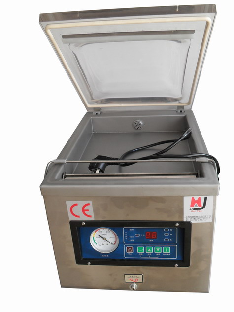 小型真空包裝機(jī);型號:ZF-260產(chǎn)品介紹:臺式真空包裝機(jī)的功能是抽掉塑料包裝袋內(nèi)的氣體,此外還有抗壓、阻氣、保鮮等作用。但是,有許多食品不適宜采用真空包裝而必須采用真空充氣包裝,食品經(jīng)真空包裝后,塑料袋內(nèi)充氣壓強(qiáng)大于包裝袋外大氣壓強(qiáng) ,能有效防止食品受壓破碎變形 ,并不影響包裝袋的外觀及印刷。 本機(jī)采用透明的有機(jī)玻璃蓋, 對包裝過程一目了然,具有抽真空、封口、印字、冷卻一次完成之功能,機(jī)體面板上設(shè)有抽真空時間、熱封時間、冷卻時間及溫度高低等按鍵,根據(jù)實際包裝物品設(shè)置,以達(dá)到最佳包裝效果。用途范圍:家用真空包裝機(jī)的用途非常廣泛,以塑料復(fù)合薄膜或塑料鋁箔復(fù)合膜為包裝材料,對固體、液體、粉狀、顆粒、糊狀的食品、糧食、醬菜、藥品、電子元件、儀器儀表等物品進(jìn)行真空包裝。電子原件、半導(dǎo)體產(chǎn)品經(jīng)過真空包裝后,可以有效防靜電、防氧化、防潮,從而可以長期的保存,而不會因為外部原因?qū)е聯(lián)p壞。 技術(shù)參數(shù):型號260電壓220(V)功率370(W)封口長度260(mm) 熱封條數(shù)1極限真空 -0.1 (≤MPa) 抽氣速度10(m3/h) 工作效率2~3(t/min) 真空室尺寸(mm)260×360×90  外型尺寸330×480×380 (mm)