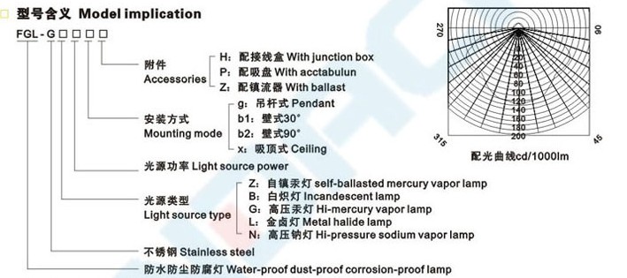 騰達防爆F(xiàn)GL-G系列防水防塵防腐不銹鋼燈型號及說明