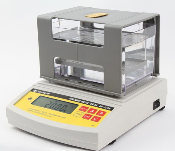 快速測試黃金、鉑金、其它貴金屬純度,區(qū)分贗品 無損檢測,清潔環(huán)保,測試后不會損壞樣品原型 測試時間快速,方便快捷,性能穩(wěn)定,結(jié)果準確 多模式,黃金模式、鉑金模式、其它貴金屬模式可自由轉(zhuǎn)換 全自動零點跟蹤、蜂鳴器報警、超載報警功能 使用水作介質(zhì),也可使用其它液體介質(zhì),可設定實際水溫 與傳統(tǒng)掉水法相比,本機采用一體成形大容量測量配件,水槽防腐蝕、耐摔、耐破,吊線不會影響測量結(jié)果 含RS-232輸出接口,可選購DE-40打印機,直接打印測試結(jié)果;配置專用防風防塵罩,組合方便 DA系列與DE系列測量臺采用Free Flip免翻蓋設計,操作更簡便、更快速、更符合現(xiàn)場快速測量 DE-120K為高精度的黃金純度檢測儀,適合小型樣品與要求高的場合 多功能,其它貴金屬純度皆能測量,如錫、銅、銀等,亦可當精密天平便用 具有上下限功能,合格顯示OK、超出顯示HI、小于顯示LO,并提示報警 不能測空心,鑲有寶石的樣品