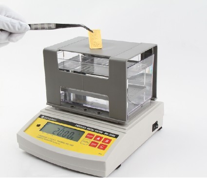 型 號 DH-300K DH-600K DH-900K DH-1200K DH-2000K DE-120K 最大稱重 300g 600g 900g 1200g 2000g 120g 稱重精度 0.005g 0.01g 0.001g 密度精度 0.001g/cm3 0.01g/cm3 0.0001g/cm3 測量時間 10S 測量臺 一體成型大容量塑膠測量臺 免翻蓋高精密鋁合金測量臺 測量容器 一體成型耐磨、耐腐蝕、透明水槽(尺寸:長16.9cm×寬9.8 cm×高8.3cm) 參數(shù)設(shè)定 水溫設(shè)定、測量介質(zhì)密度設(shè)定 原 理 阿基米德原理 記憶方式 二個步驟記憶方式 測量種類 常規(guī)黃鉑金首飾、項鏈、手鐲、手鏈、戒指、大型金塊金條,黃鉑金工藝品 金、銀、銅、鎘、鎳、錫等金屬材料 常規(guī)黃鉑金首飾,項鏈、手鐲、手鏈、戒指,微小型黃鉑金飾品、貴金屬原材料等 重量小于3g以下之黃鉑金與其它金屬材料 黃金 模式 顯示K值 金銀銅K值、金銅K值、金銀K值 顯示純度% 金銀銅%、金銅%、金銀% K值范圍 9K~24K 9.0K~24.0K 銅銀比例設(shè)定 循環(huán)自由設(shè)定(默認(rèn)7:3) 鉑金模式 顯示值 PT百分比、密度值、體積 PT值范圍 Pt600 - Pt1000 貴 金 屬 模 式 功能 無 測兩種混合物主要材料純度百分比 顯示值 無 密度值、體積、含量百分比 設(shè)定 無 可自由設(shè)定主、次物質(zhì)的密度值 密度精度 無 0.0001g/cm3 校正方式 單鍵自動校正、自動檢測之功能 輸出方式 RS-232C標(biāo)準(zhǔn)通信接口、方便測試數(shù)據(jù)輸出與打印 標(biāo)準(zhǔn)附件 ①主機、②水槽、③測量臺、④鑷子、⑤溫度計、⑥砝碼、⑦防風(fēng)防塵罩、⑧測金沙配件一套、⑨電源變壓器一個 防風(fēng)防塵罩 美觀耐用高透明一體成型防風(fēng)防塵罩 選購附件 DE-40打印機 電源 AC~220V / 50HZ or AC~110V/60HZ