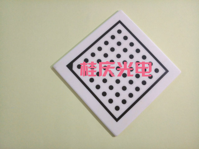 產(chǎn)品特性: 1. 攝像機(jī)標(biāo)定是準(zhǔn)確測量目標(biāo)物體的必要過程,每個(gè)鏡頭的畸變程度各不相同,通過攝像機(jī)標(biāo)定就可以校正這個(gè)鏡頭的畸 變。在攝像機(jī)標(biāo)定后就可以得到世界坐標(biāo)系中目標(biāo)物體米制單位的坐標(biāo),攝像機(jī)標(biāo)定其實(shí)就是確定攝像機(jī)內(nèi)參和外參的過程 2. 定位精度高達(dá)0.001mm; 3.halcon兼容標(biāo)定板 外圍帶邊框和一個(gè)斜角,7x7圓點(diǎn)矩陣 產(chǎn)品規(guī)格:80*80mm 圓點(diǎn)直徑:5mm 產(chǎn)品材質(zhì):陶瓷漫反射材質(zhì)