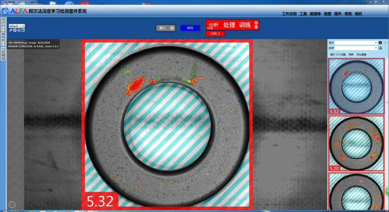 產品特點: 1、簡單方便,只需要清晰體現缺陷的圖像數據便可檢測。 2、無需算法,只需要標記圖像上的缺陷種類訓練學習。 3、有加密狗,不怕被盜用。 我們的優(yōu)勢: 1.降低人工成本:機器視覺從此不再需要高層次算法工程師,算法編程交給ALFA-Suite來做! 2.客戶掌握核心競爭力:傳統的算法,客戶經常需要原廠幫忙根據自身需求編寫程序,調節(jié)參數,最終客戶現場一有問題馬上就要向原廠求救,原廠反應慢一點單子就沒了。而且系統集成商還要和原廠簽保密協議,避免原廠拿著給自己編好的軟件去賣競爭對 手。 用了ALFA套件以后完全不用擔心類似的問題,ALFA套件給客戶提供的是訓練工具,客戶訓練好的工程文件原廠是拿不到的,不用擔心泄密問題。如何訓練軟件自己編程,完全由自己掌握。 3.操作簡便:哪里是缺陷哪里要定位,哪里要做字符識別,直接通過ALFA軟件工具標出來即可,操作界面簡潔有效,軟件學習標記后的缺陷,馬上就可以識別類似的缺陷。機器完美替代部分腦力勞動者的工作! 4.準確率高:傳統機器視覺軟件可能優(yōu)化了5年識別準確率只有95%-97%,ALFA套件學習一輪準確率就到96%不斷迭代學習準確率無限接近于100%。 5.編程速度快:傳統軟件可能缺陷檢測需要兩個月來編程,ALFA套件1天就可以做好,直接上生產線使用。 6.降低維護成本:傳統軟件只要檢測出錯,需要派工程師重新調試和優(yōu)化整個軟件, ALFA套件哪張識別錯了學習哪張,產線工人即可操作。 7.中文操作界面: ALFA套件界面友好,全中文操作界面! 8.支持項目定制:若3個工具不能完全滿足客戶需求,原廠支持定制。