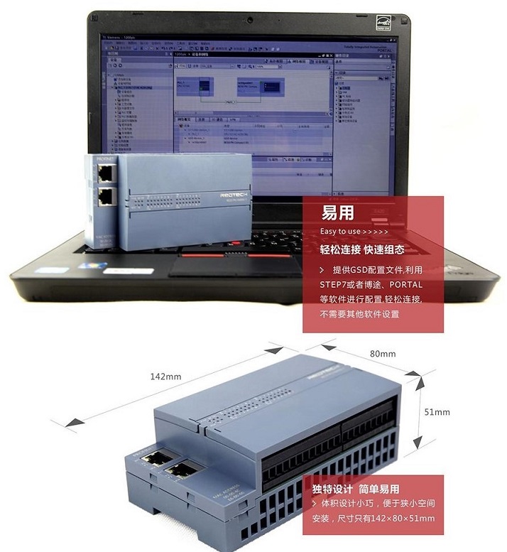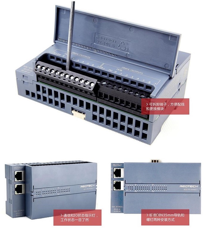 〉模塊通信接口支持PROFINET總線協(xié)議,符合IEC61158標(biāo)準(zhǔn)和GB/T25105標(biāo)準(zhǔn)。 〉支持PROFINET RT IRT功能。 〉集成的2口交貨機(jī)方便構(gòu)建線性撲拓結(jié)構(gòu)。 〉可以用博途軟件進(jìn)行硬件組態(tài)。 〉多種模擬量開(kāi)關(guān)量組合型號(hào)。 〉標(biāo)準(zhǔn)DIN35導(dǎo)軌安裝或者螺釘安裝。