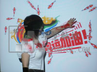 背投互動投影可以將任何透明表面變成一個神奇的可互動平面。 該產(chǎn)品采用了精確點(diǎn)擊和運(yùn)動檢測技術(shù),其互動形式為接觸或非接觸式,可互動的熱區(qū)不僅是固定位置的,還可以在圖像上隨機(jī)運(yùn)動,這種運(yùn)動的交互點(diǎn)能夠吸引觀眾參與到這種新型的交互體驗(yàn)中來。同時這些交互點(diǎn)的觸碰效果可以表現(xiàn)的更動感、更幻化,令觀眾在了解投影所要表達(dá)的信息之外體驗(yàn)到這種新型交互形式的自由與震撼。