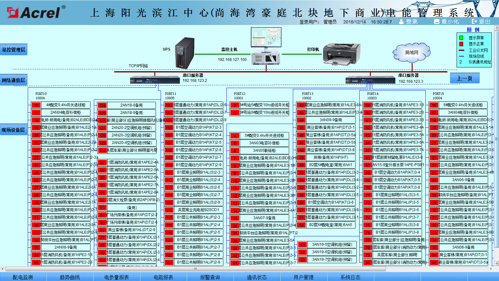 站控管理層針對(duì)電力監(jiān)控系統(tǒng)的管理人員,是人機(jī)交互的直接窗口。在上海陽光濱江中心(尚海灣豪庭北塊地下商業(yè))工程中主要指置于1#配電室的監(jiān)控主機(jī)。