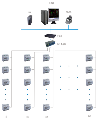 整個(gè)預(yù)付費(fèi)管理系統(tǒng)主要實(shí)現(xiàn)武漢商貿(mào)職業(yè)學(xué)院中南航空學(xué)院項(xiàng)目的0.4kV配電系統(tǒng)進(jìn)行收費(fèi)管理和能效考核;監(jiān)控范圍為配電箱內(nèi)安裝的480臺(tái)DDSY1352-NK,分16條總線(xiàn),現(xiàn)場(chǎng)所有電表均通過(guò)屏蔽雙絞線(xiàn)和設(shè)置于后臺(tái)的通訊管理機(jī)進(jìn)行通訊,由通訊管理機(jī)將數(shù)據(jù)處理后上傳至預(yù)付費(fèi)系統(tǒng)后臺(tái),最后實(shí)現(xiàn)總線(xiàn)上儀表與監(jiān)控主機(jī)的數(shù)據(jù)連通,完成能效管理和收費(fèi)管理的系統(tǒng)功能。