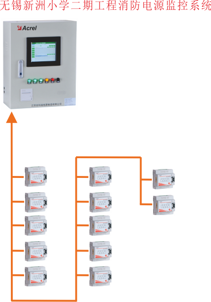本項(xiàng)目設(shè)計(jì)范圍為無(wú)錫市新洲小學(xué)二期工程消防設(shè)備電源回路,共10臺(tái)三相雙電源配電箱、2臺(tái)三相配電箱,在消防負(fù)荷配電箱內(nèi)安裝消防設(shè)備電源電壓信號(hào)傳感器,消防設(shè)備電源狀態(tài)監(jiān)控器設(shè)置消防控制室室,系統(tǒng)采用手拉手總線形式組網(wǎng)。