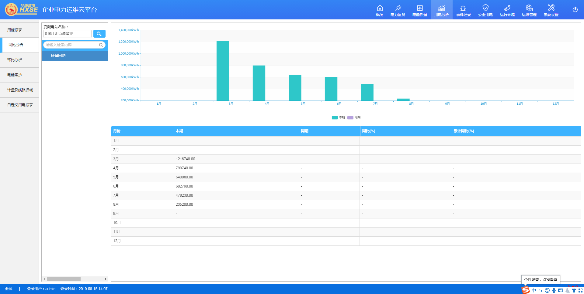 用電分析包括用能報(bào)表、同比分析、環(huán)比分析、電能集抄、計(jì)量及線路損耗。