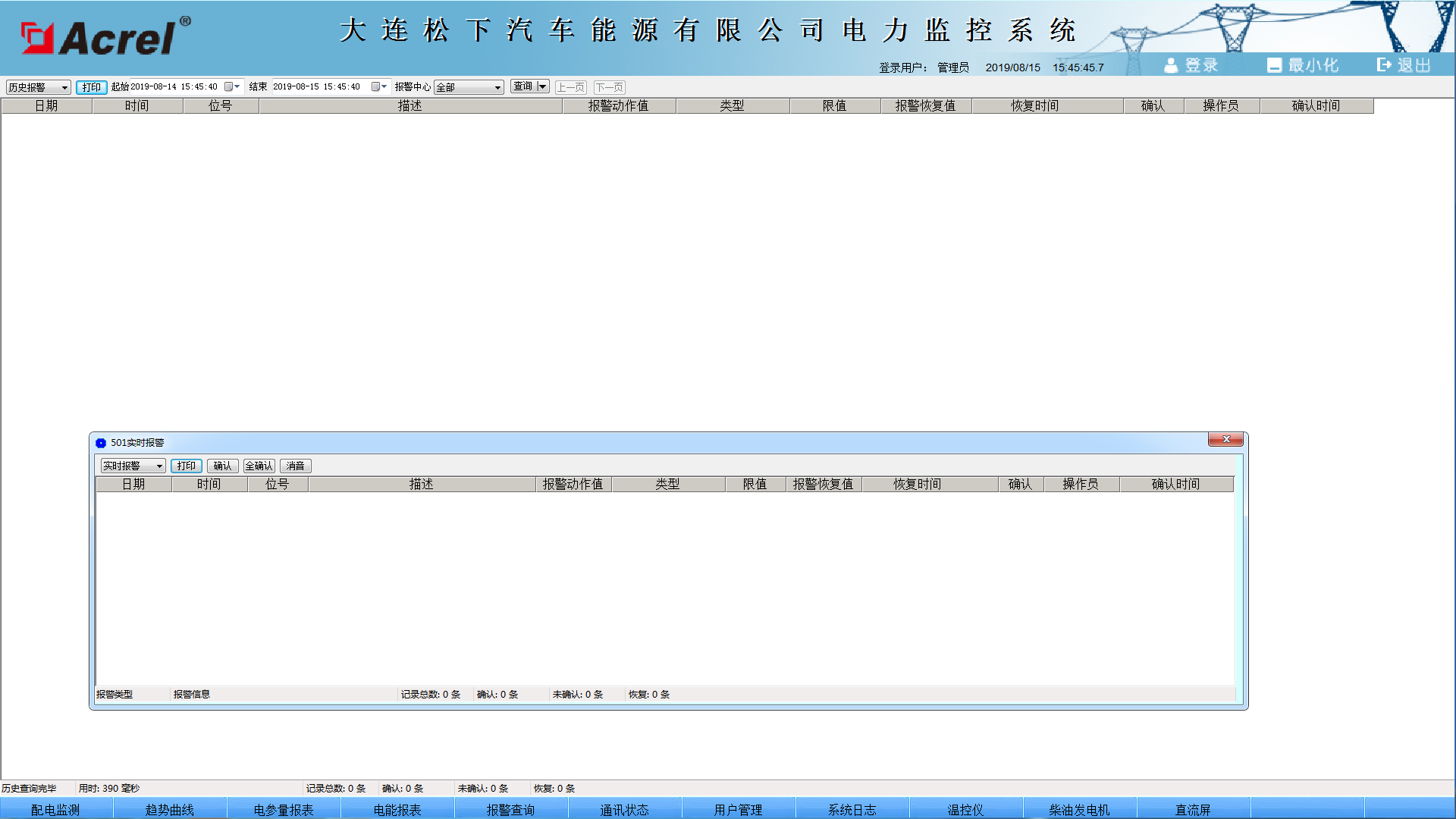 遙信和遙測報警功能,主要完成對低壓各出線回路的開關(guān)運行狀態(tài)和負載進線監(jiān)控,對開關(guān)變位和負載越限彈出報警界面指示具體的報警位置并聲音報警,提醒值班人員及時處理。負載越限值在相應(yīng)權(quán)限下可自由設(shè)置。具備歷史查詢功能。見圖(3)。