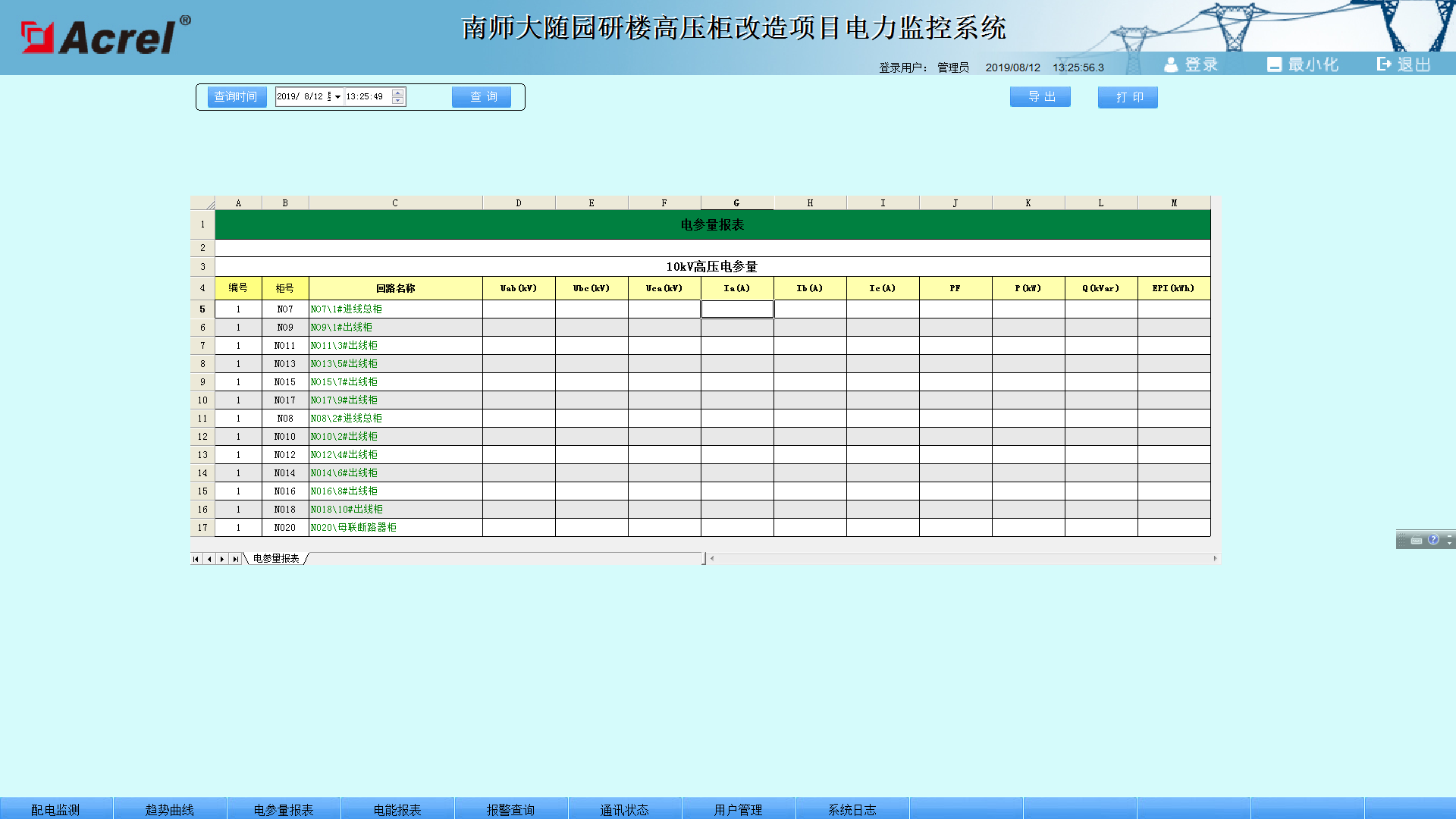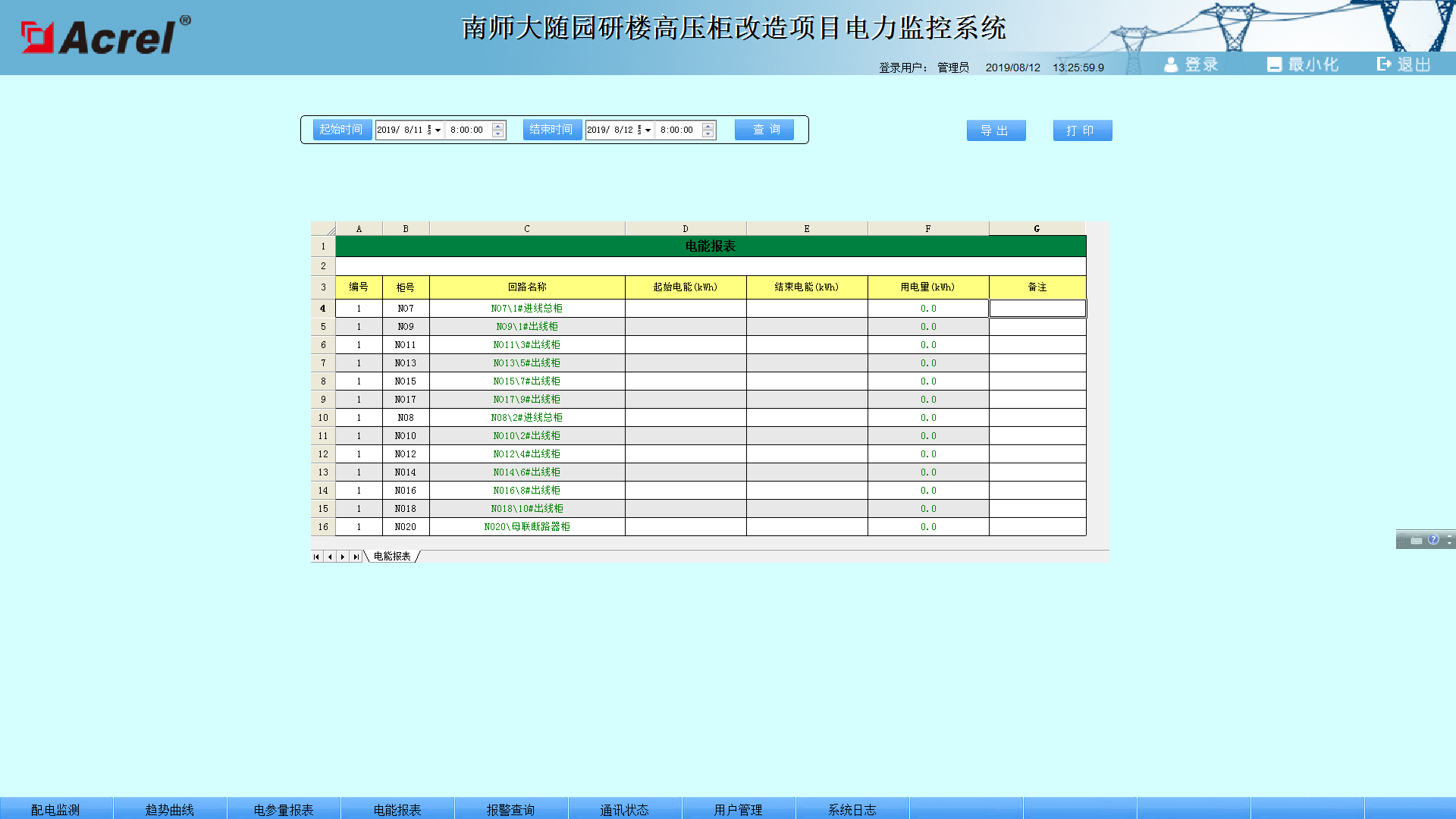 報(bào)表具有自由設(shè)置查詢時(shí)間實(shí)現(xiàn)日、月、年的電能統(tǒng)計(jì),數(shù)據(jù)導(dǎo)出和報(bào)表打印等功能。