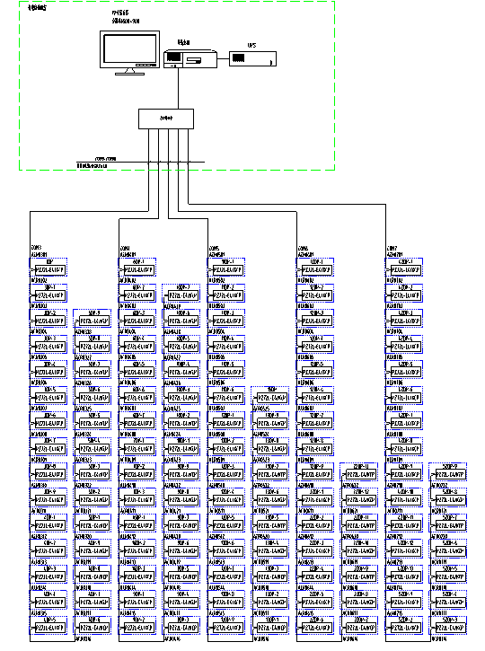 系統(tǒng)通訊結(jié)構(gòu)示意圖,主要顯示系統(tǒng)的組網(wǎng)結(jié)構(gòu),系統(tǒng)采用分層分布式結(jié)構(gòu),同時(shí)監(jiān)測(cè)間隔層設(shè)備的通信狀態(tài)。紅色表示通訊正常,綠色表示通訊故障。見(jiàn)圖(6)。