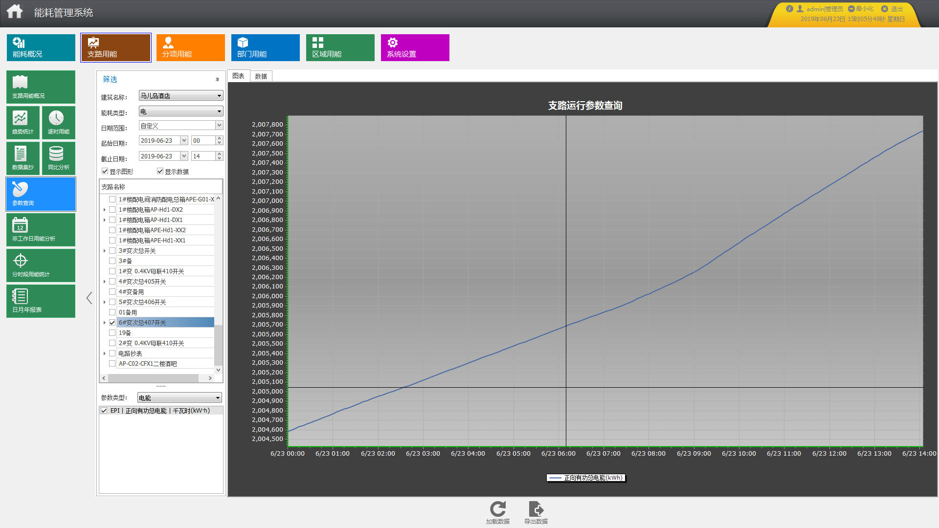 統(tǒng)計(jì)各配電回路某段時間內(nèi)逐日、逐周、逐月、逐季、逐年用能。分類能耗支路分時段用能趨勢分析。