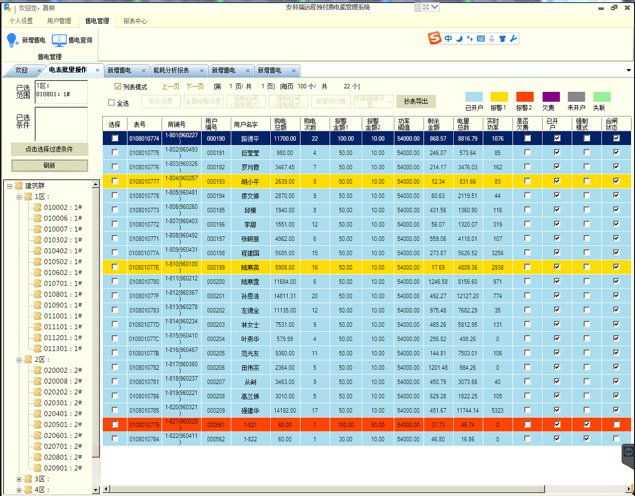 系統(tǒng)針對商鋪開戶不僅支持一戶一表,也支持一戶掛多表的需要;同時(shí)支持和解決了項(xiàng)目改造后新老表切換時(shí),老表金額轉(zhuǎn)入的問題;支持峰谷電價(jià),支持一表一電價(jià);可對單表設(shè)置功率過載的閾值,也支持設(shè)置單表金額報(bào)警的兩級閾值。
