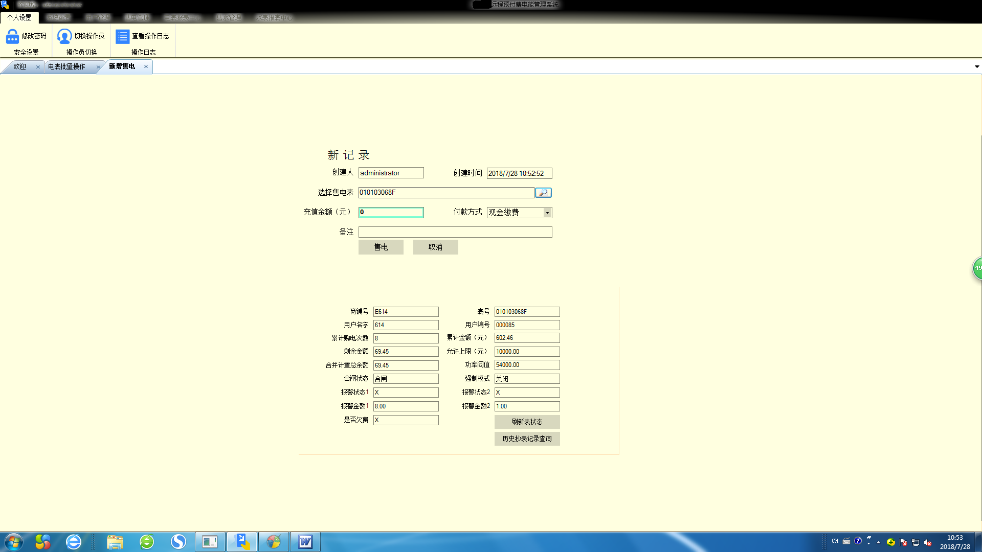 4.售電管理:對已開戶的表進(jìn)行遠(yuǎn)程售電、退電、沖正及記錄查詢等操作;